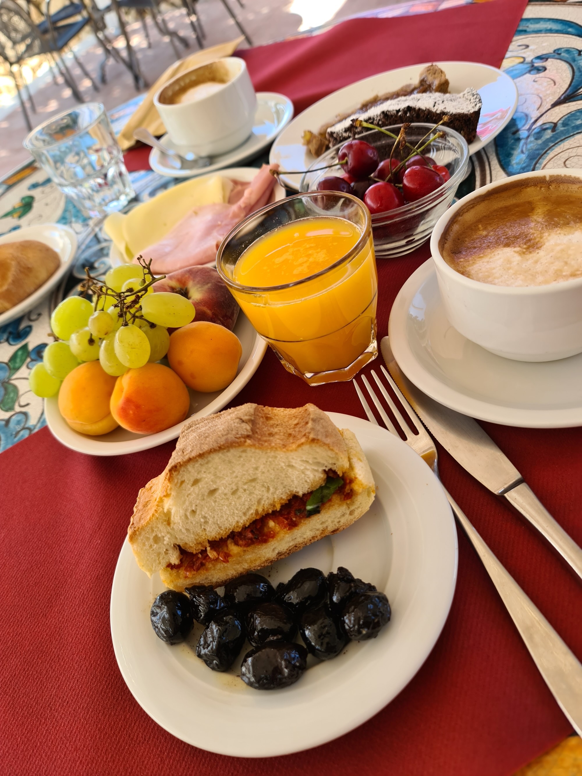The view over evergreen olive trees and orange groves to the sea is enchanting.